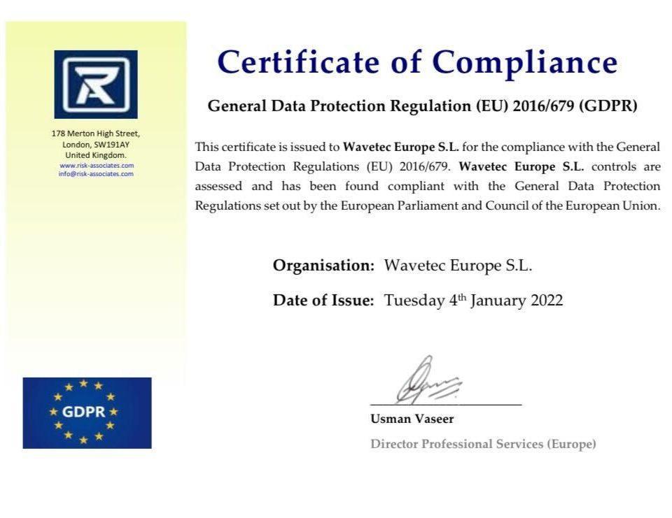 Wavetec is GDPR compliant in 2022! We were audited by Risk Associates, United Kingdom, and…